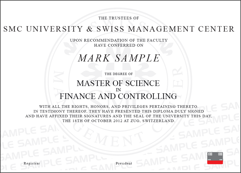 - Международный диплом «MSc in Finance and Controlling» (Швейцария, университет SMC)