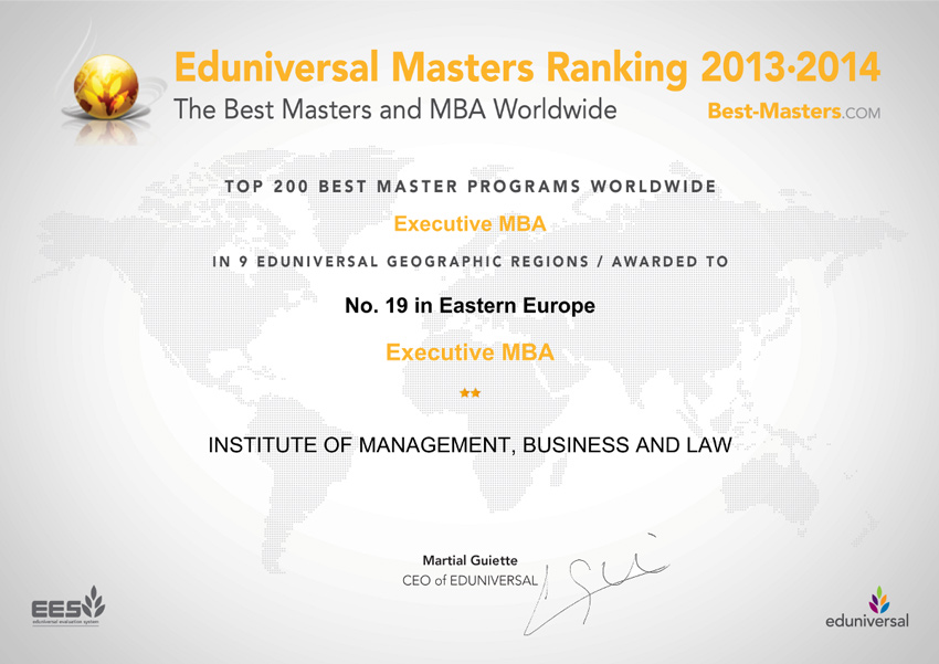 По данным Международного рейтингового агентства Eduniversal МВА программы Международной школы бизнеса отмечены в рамках рейтингов среди лучших бизнес-школ Восточной Европы. |